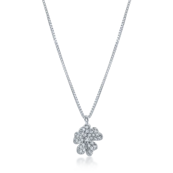Lant cu pandantiv floare din aur alb cu diamante de 0.5ct