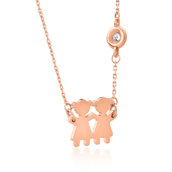 Lant cu pandantiv fetite din aur roz cu diamant de 0.02ct