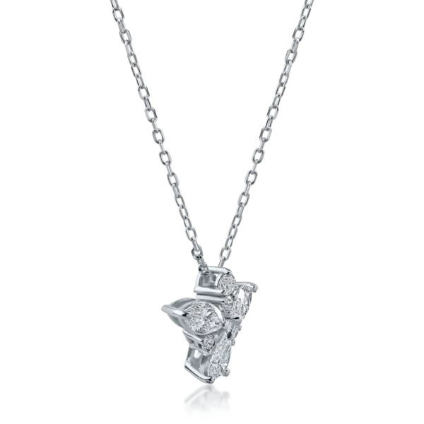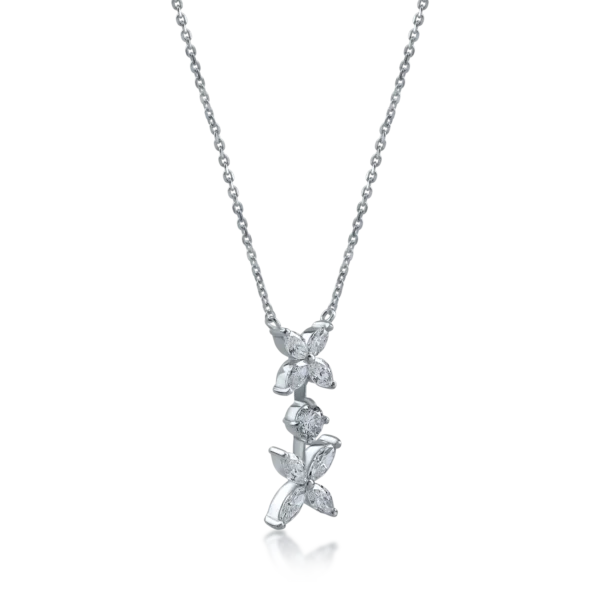 Lant cu pandantiv floral din aur alb cu diamante marquise si rotunde de 0.6ct
