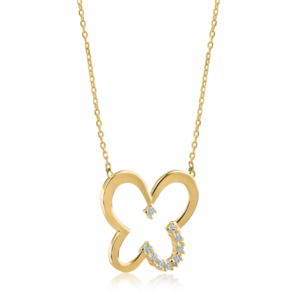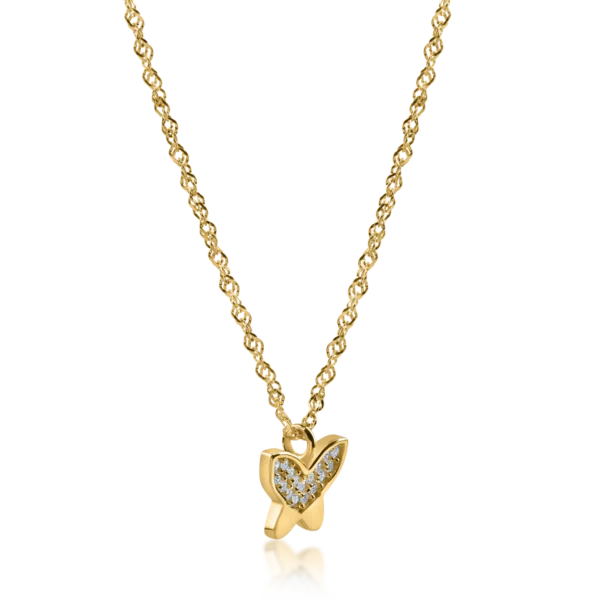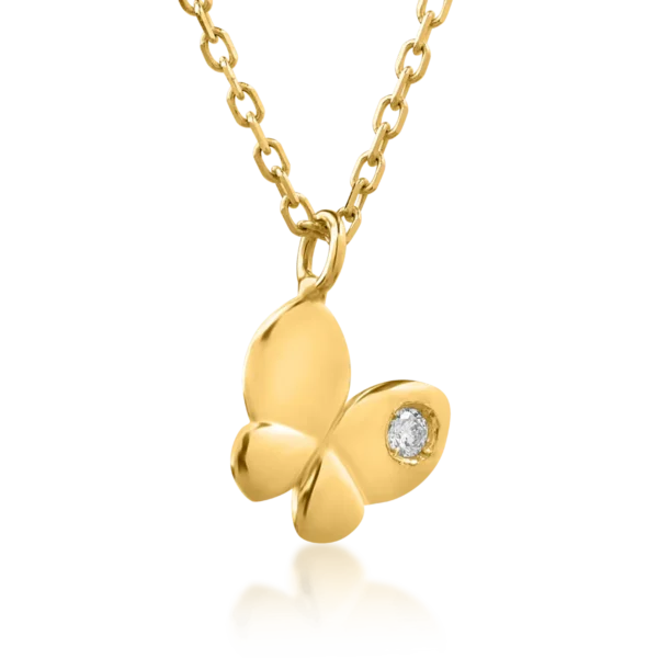 Lant cu pandantiv fluturas din aur galben cu diamant de 0.02ct