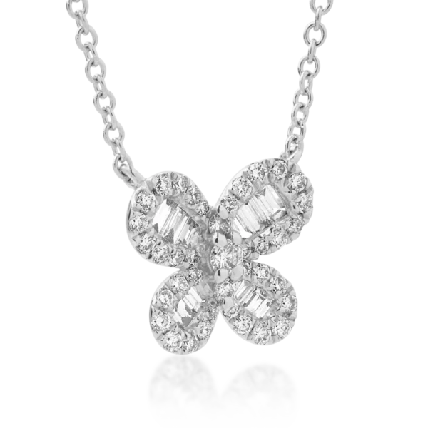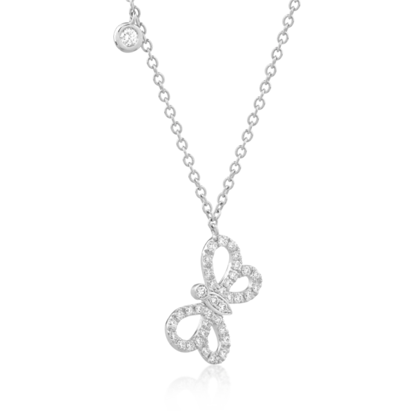 Lant cu pandantiv fluture din aur alb cu diamante de 0.45ct