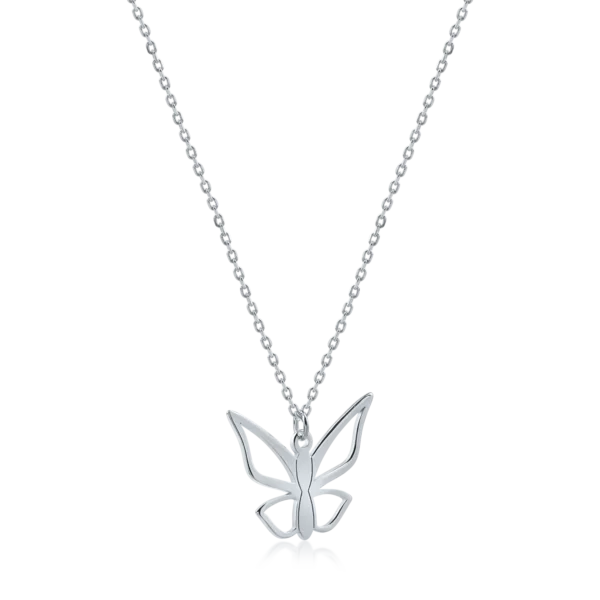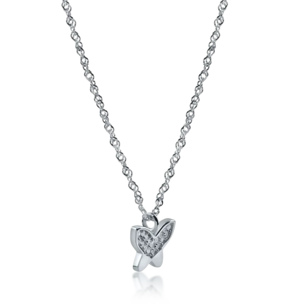 Lant cu pandantiv fluture din aur alb cu diamante de 0.25ct