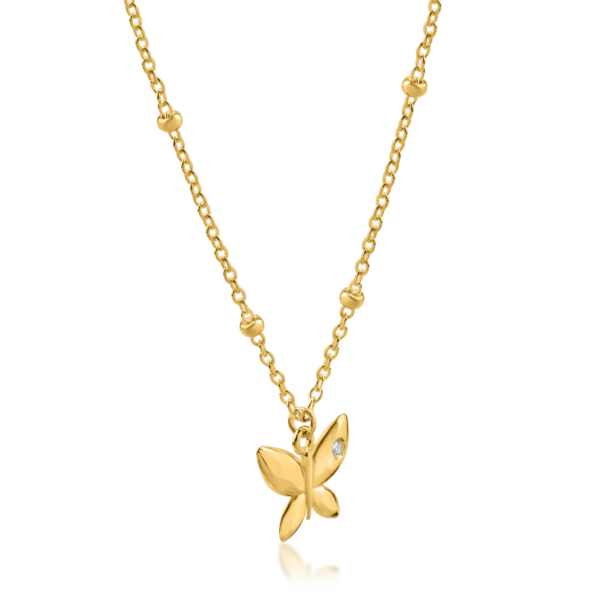 Lant cu pandantiv fluture din aur galben cu diamant de 0.006ct