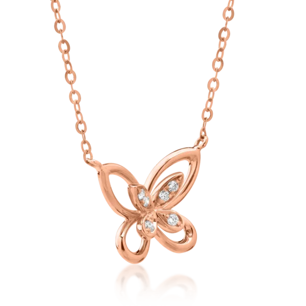 Lant cu pandantiv fluture din aur roz cu diamante de 0.01ct pentru copii