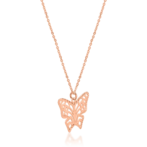 Lant cu pandantiv fluture din aur roz cu diamante de 0.027ct