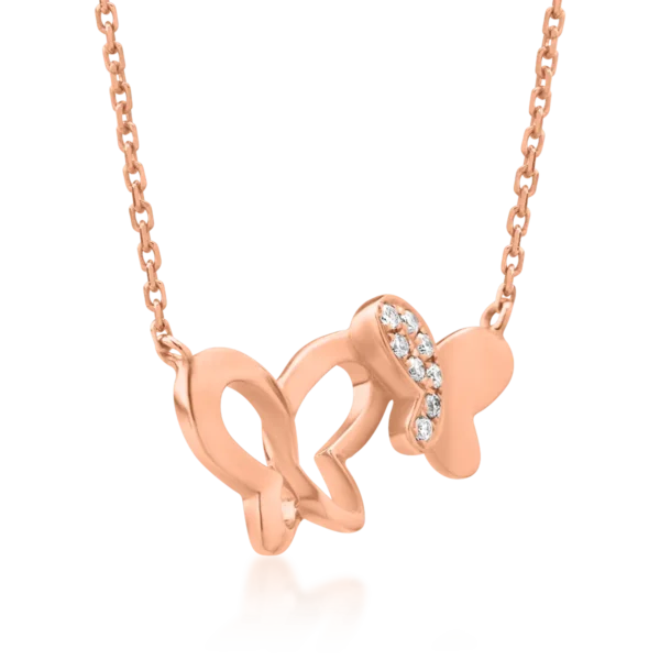 Lant cu pandantiv fluturi din aur roz cu diamante de 0.021ct