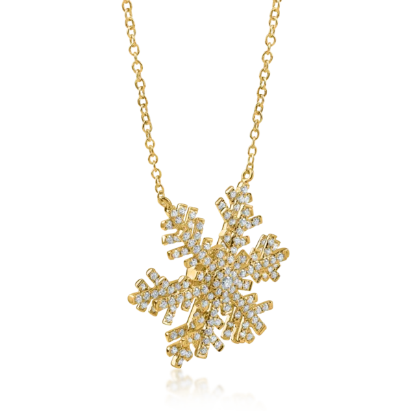 Lant cu pandantiv fulg de nea din aur galben cu diamante de 1.1ct