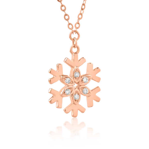 Lant cu pandantiv fulg de nea din aur roz cu diamante de 0.03ct
