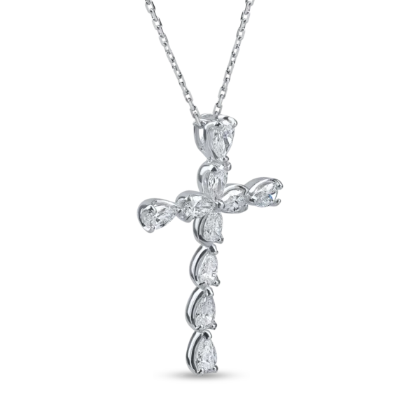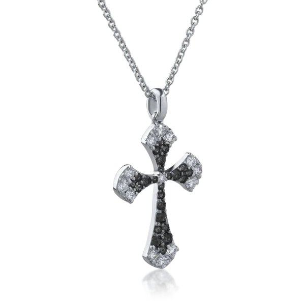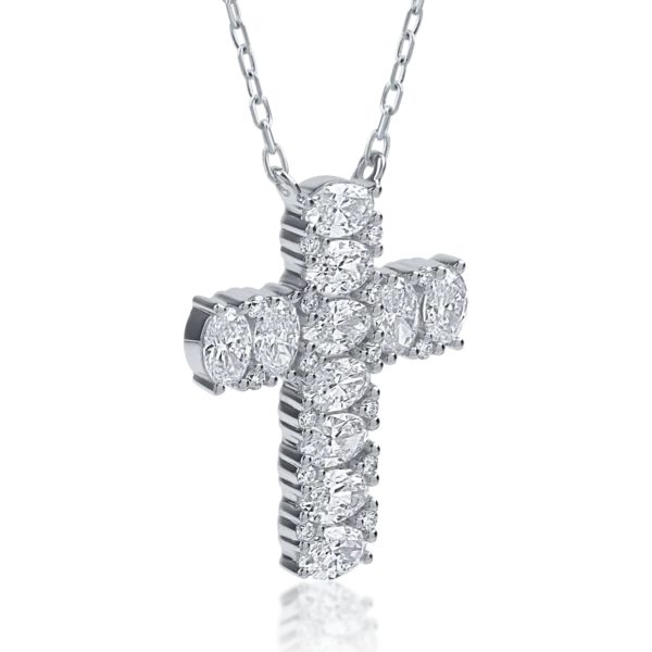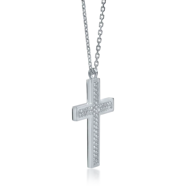 Lant cu pandantiv cruce din aur alb cu diamante de 1.2ct