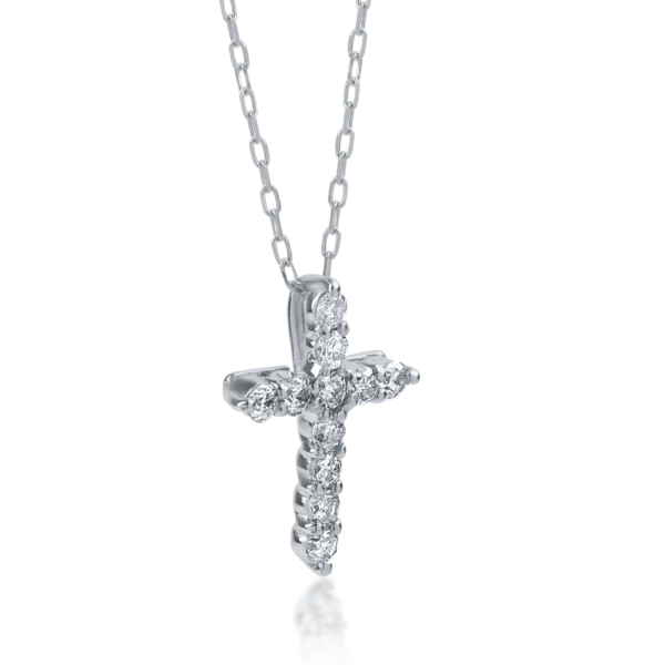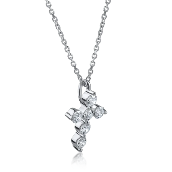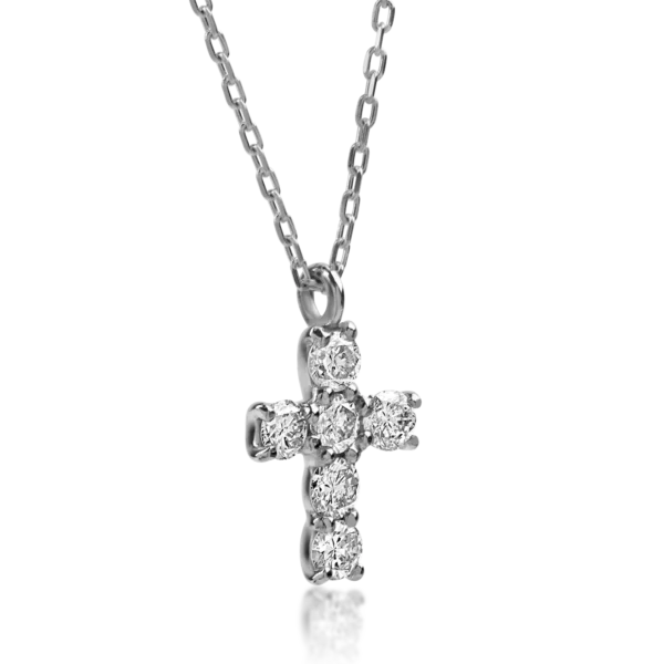 Lant cu pandantiv cruce din aur alb cu diamante de 0.7ct