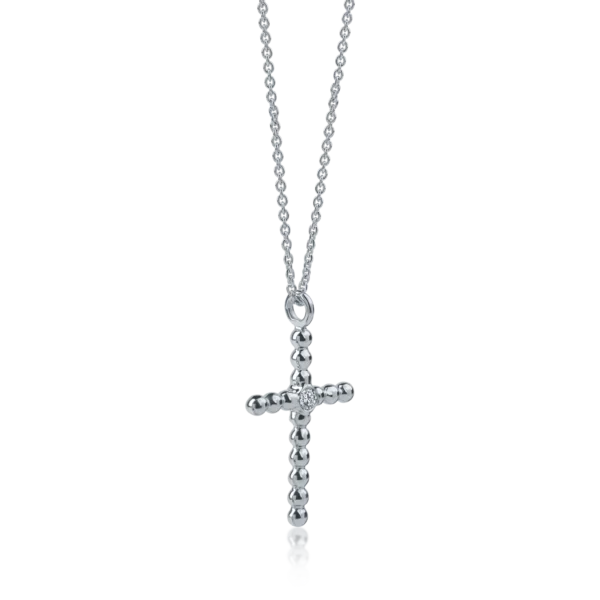 Lant cu pandantiv cruce din aur alb cu diamante de 0.1ct