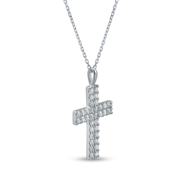 Lant cu pandantiv cruce din aur alb cu diamante de 0.65ct