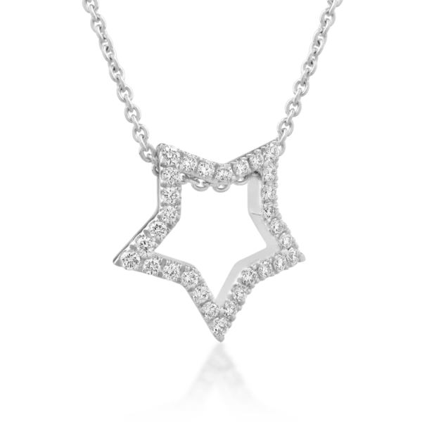 Lant cu pandantiv stea din aur alb cu diamante de 0.23ct