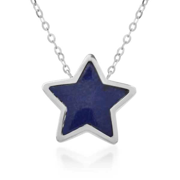 Lant cu pandantiv stea din aur alb cu lapis lazuli de 1.2ct si diamante de 0.079ct