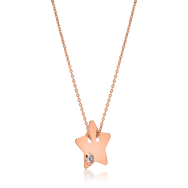Lant cu pandantiv stea din aur roz si diamant de 0.005ct