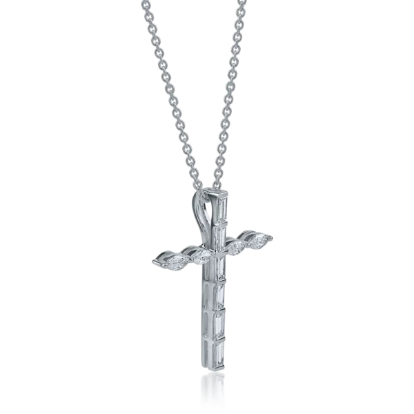 Lant cu pandantiv cruce din aur alb cu diamante marquise si rotunde de 0.46ct