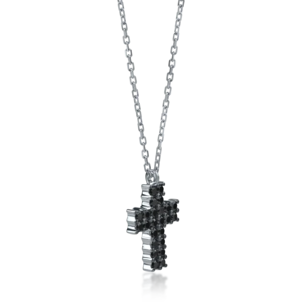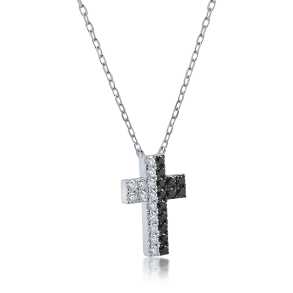 Lant cu pandantiv cruce din aur alb cu diamante incolore de 0.01ct si diamante negre de 0.09ct