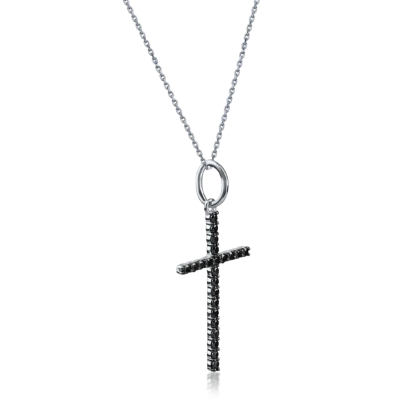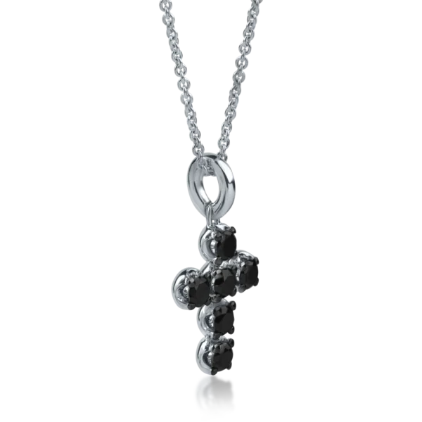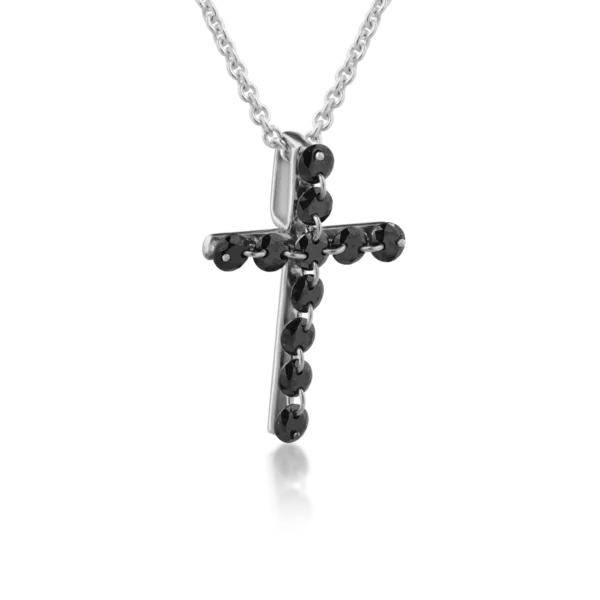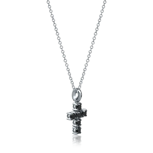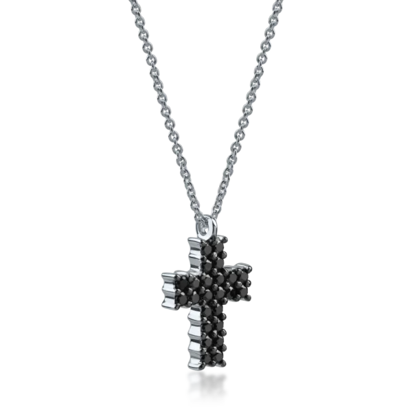 Lant cu pandantiv cruce din aur alb cu diamante negre de 1.5ct