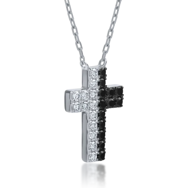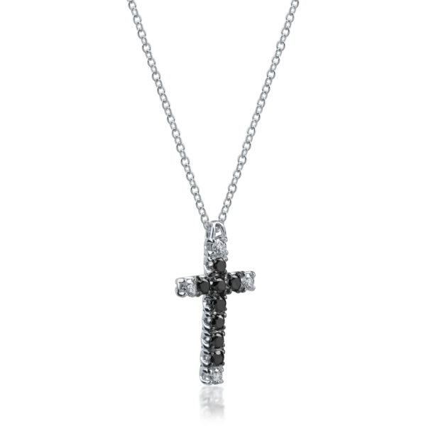 Lant cu pandantiv cruce din aur alb cu diamante incolore si negre de 0.4ct