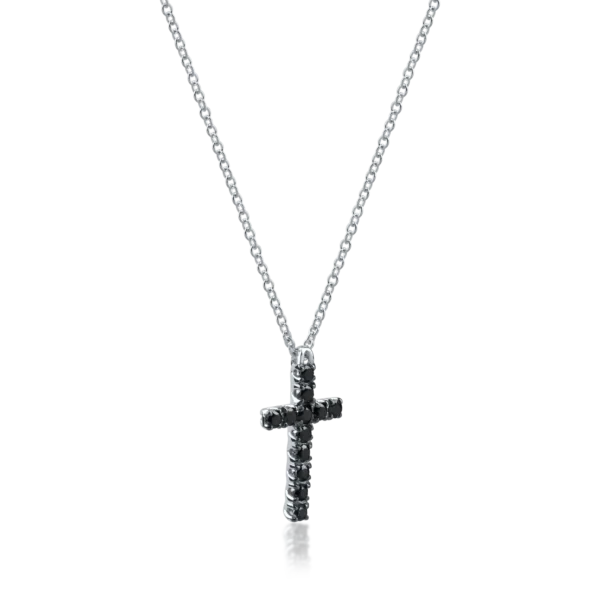 Lant cu pandantiv cruce din aur alb cu diamante negre de 0.38ct
