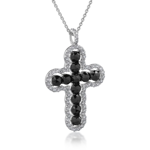 Lant cu pandantiv cruce din aur alb cu diamante negre rose de 1.9ct si diamante transparente de 0.5ct