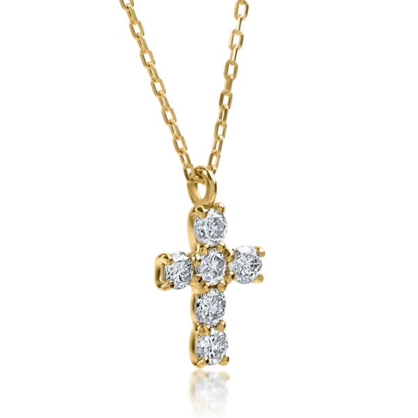 Lant cu pandantiv cruce din aur galben cu diamante de 0.1ct