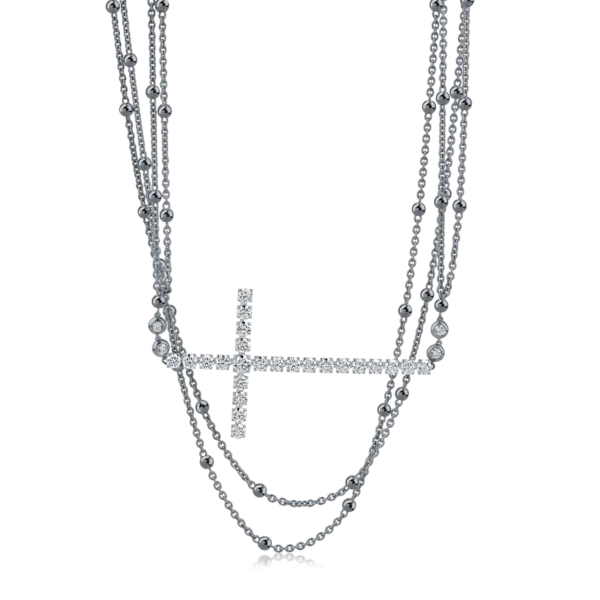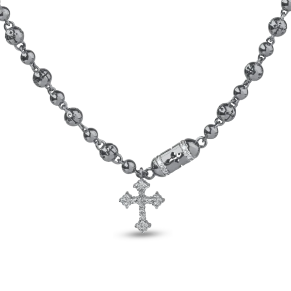 Lant cu pandantiv cruce din aur negru cu diamante de 3.23ct