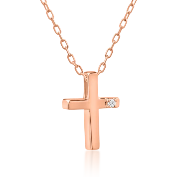 Lant cu pandantiv cruce din aur roz cu diamant de 0.01ct