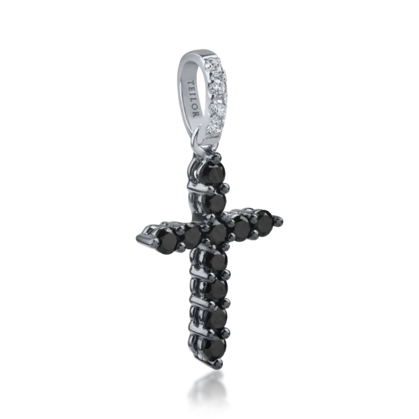 Pandant cruce din aur alb negru cu diamante negre de 0.3ct si diamante incolore de 0.05ct
