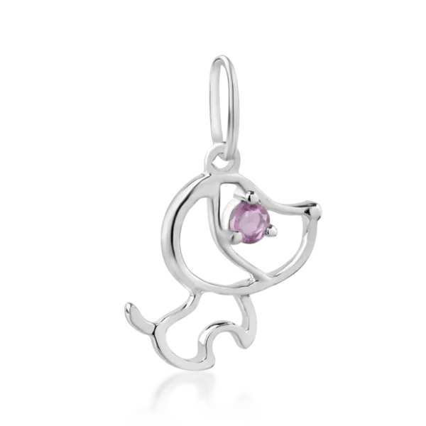 Pandantiv catelus pentru copii din aur alb cu safir roz de 0.05ct
