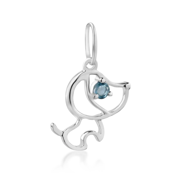 Pandantiv catelus pentru copii din aur alb cu topaz de 0.04ct