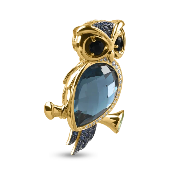 Pandantiv bufnita din aur galben cu pietre pretioase si semipretioase de 11.76ct