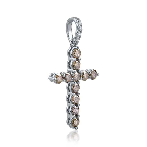 Pandantiv cruce din aur alb-negru cu diamante maro si diamante incolore de 1.2ct
