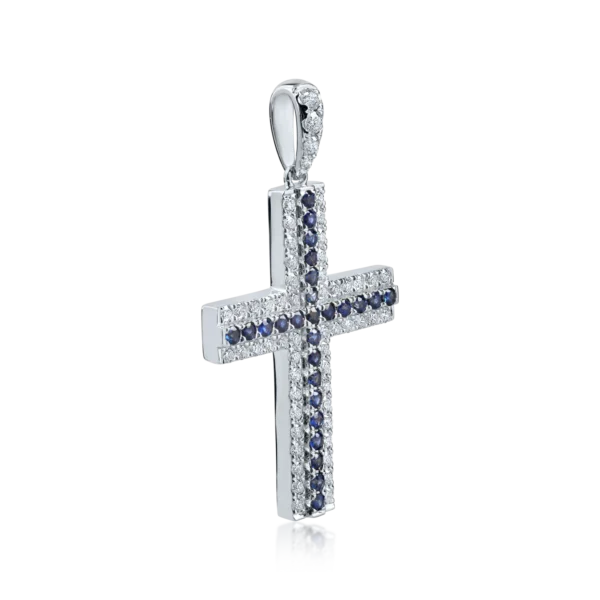 Pandantiv cruce din aur alb cu safire de 1.7ct si diamante de 0.9ct