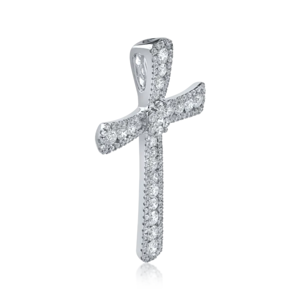 Pandantiv cruce din aur alb cu diamante de 1.19ct