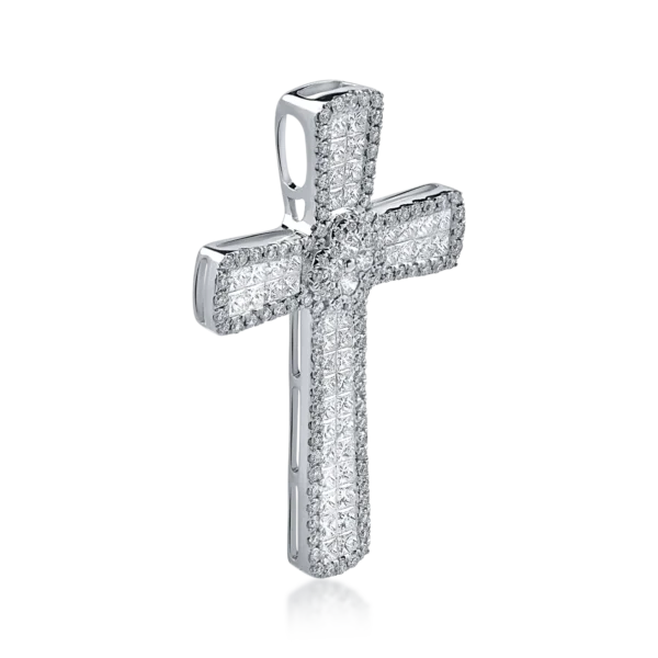 Pandantiv cruce din aur alb cu diamante princess si rotunde de 2ct
