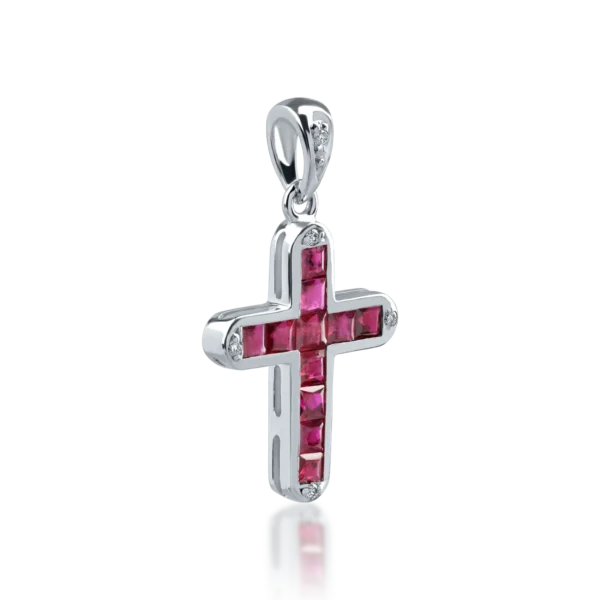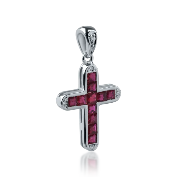 Pandantiv cruce din aur alb cu rubine square de 0.66ct si diamante de 0.03ct
