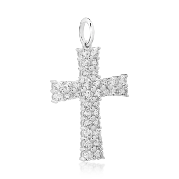 Pandantiv cruce din aur alb cu diamante de 1.4ct