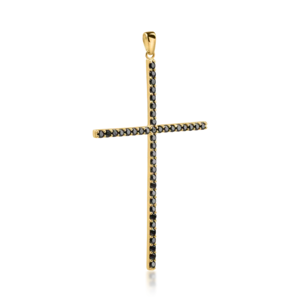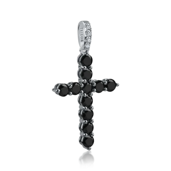 Pandantiv cruce din aur alb-negru cu diamante negre si incolore de 2ct