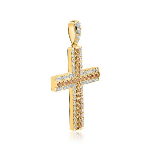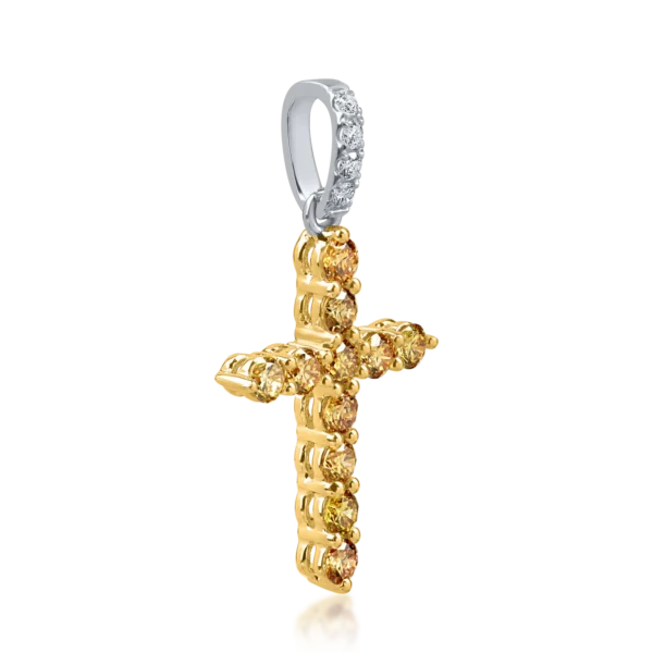 Pandantiv cruce din aur galben cu diamante galbene de 0.5ct si diamante incolore de 0.04ct