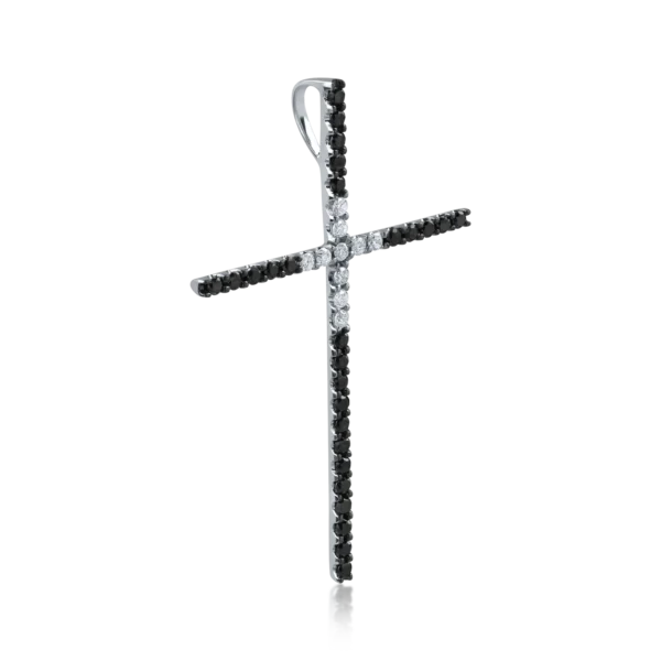 Pandantiv cruce din aur alb-negru cu diamante negre si incolore de 1.3ct