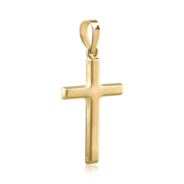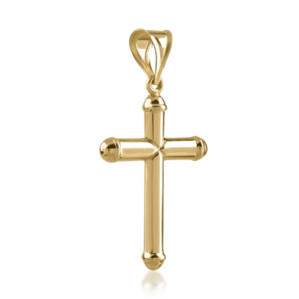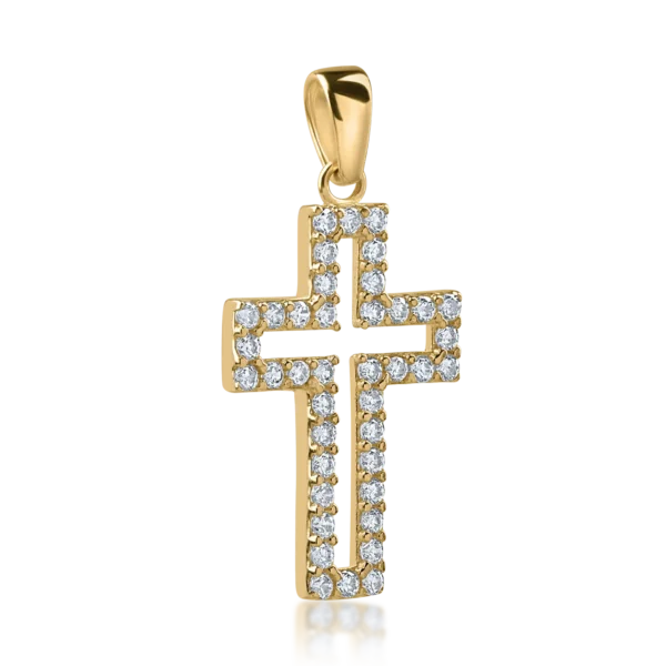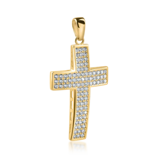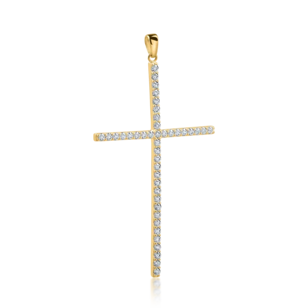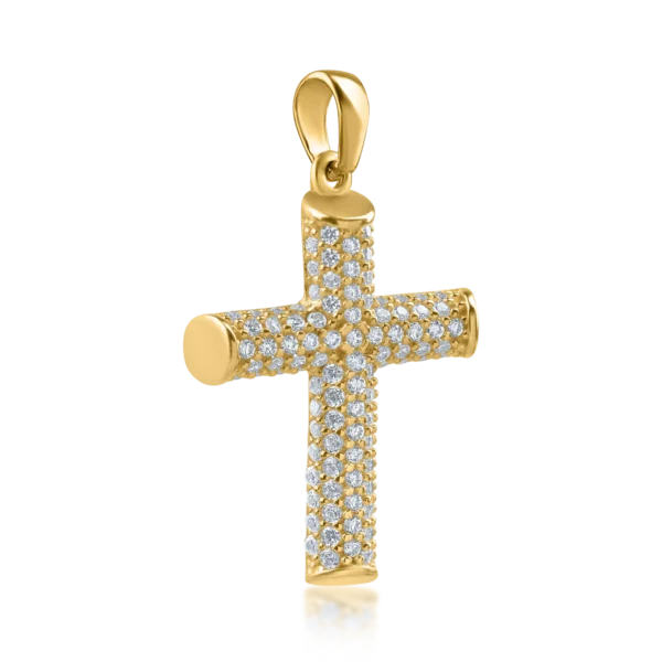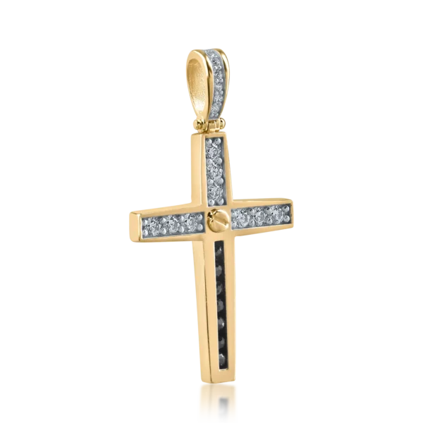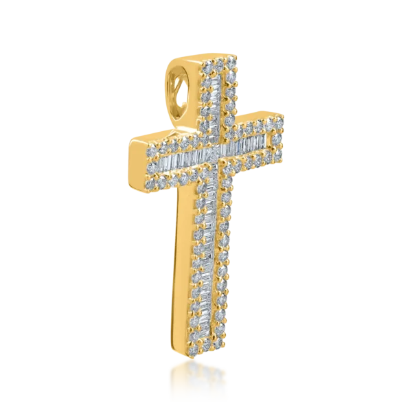 Pandantiv cruce din aur galben cu diamante baguette, princess si rotunde de 1.2ct