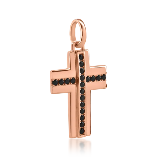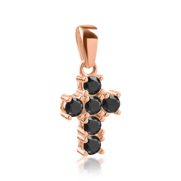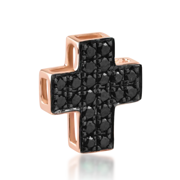 Pandantiv cruce din aur roz cu diamante negre de 0.2ct