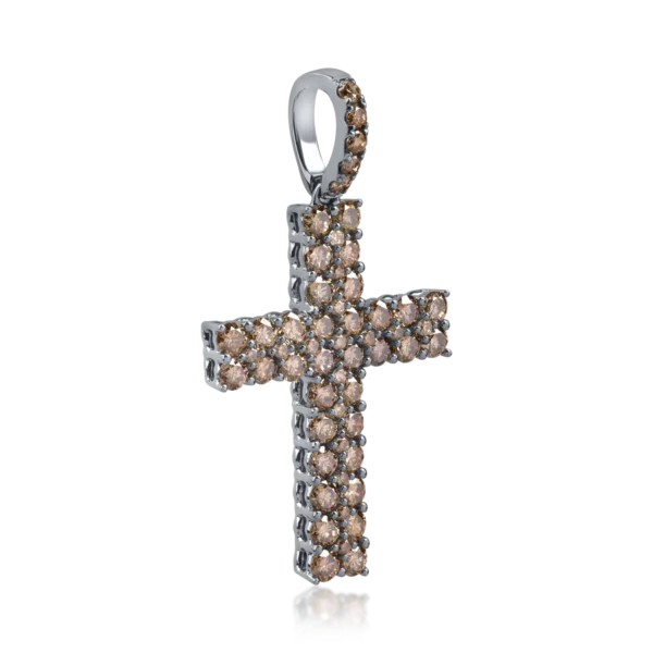 Pandantiv cruce din aur negru cu diamante maro de 1.85ct