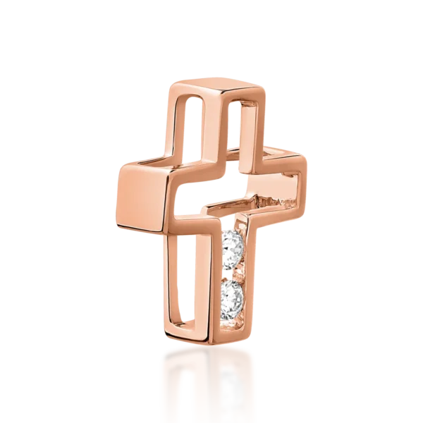Pandantiv cruce din aur roz cu diamante de 0.029ct