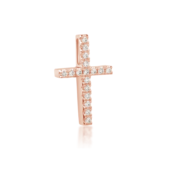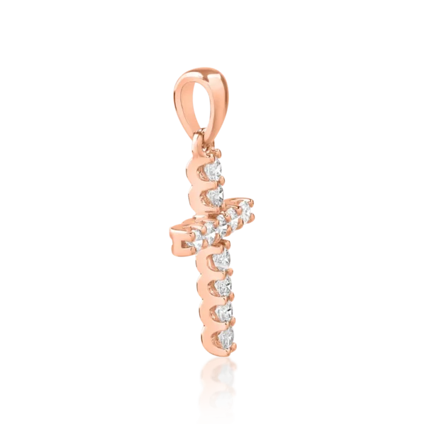 Pandantiv cruce din aur roz cu diamante de 0.2ct