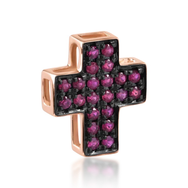 Pandantiv cruce din aur roz cu rubine de 0.17ct