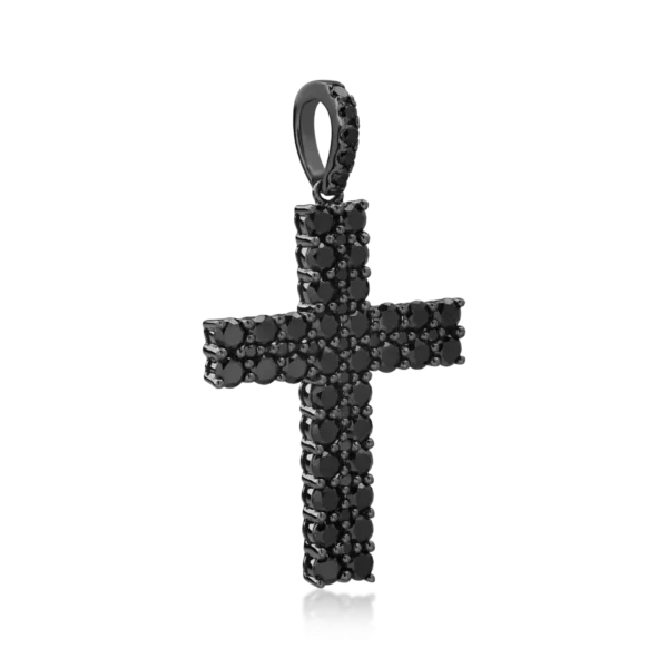 Pandantiv cruce din aur negru cu diamante negre de 1.93ct