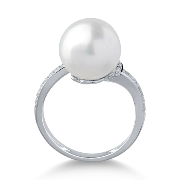 Inel din aur alb cu diamante de 0.24ct si perla de cultura