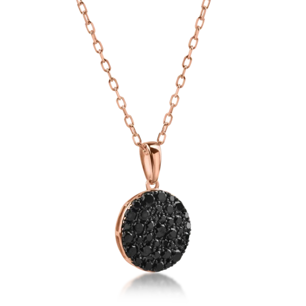 Lant cu pandantiv rotund din aur roz cu diamante negre de 0.3ct